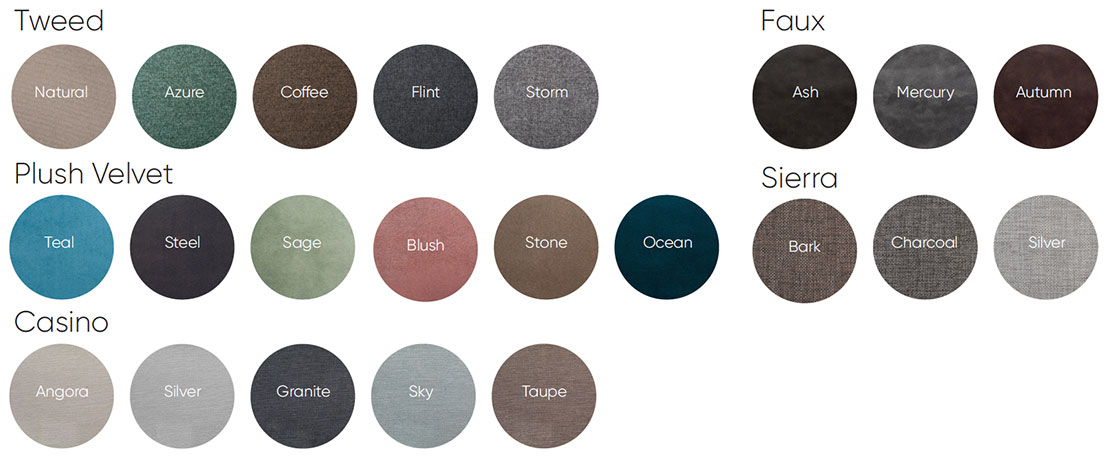 Our upholstered headboards are available in these fabrics